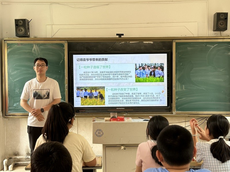 7月4日,团队在朱官寨镇中心小学开启十天科普支教。依托前期研学的丰硕成果,打造系列特色课程:宣讲科学家精神,让孩子们触摸科技脉动;开展趣味实验,探索科学变化之美;举办知识竞赛,深化对生物多样性的认知。